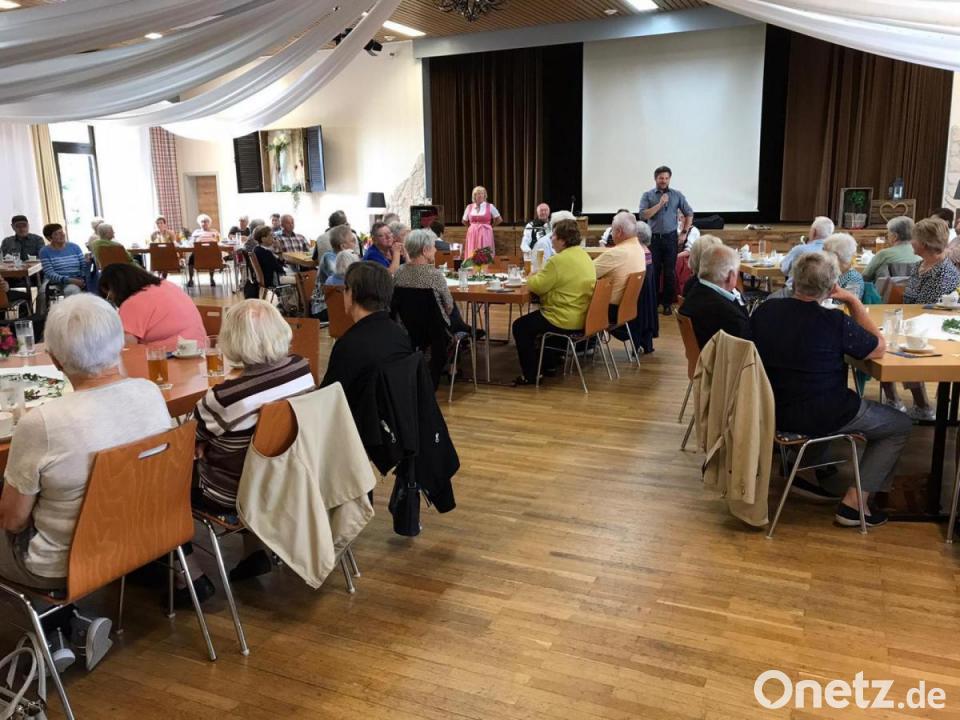 Seniorenbeauftragte Gabi Beck hatte zusammen mit ihrem Helferteam in den Saal des Restaurants Miesberg eingeladen und konnte über 100 Kaffeegäste begrüßen. Die Freude war den Teilnehmern anzumerken, als die Geschwister Winterer mit Anton Reiger am Akkordeon musikalisch die Heimat besangen und mit bekannten Wirtshausliedern zum Schunkeln und Mitsingen einluden. Für Bewegung im Saal sorgten als Einlage einfache, gymnastische Übungen am Sitzplatz, angeleitet durch die Organisatorin und gelernte Übungsleiterin Gabriele Beck.