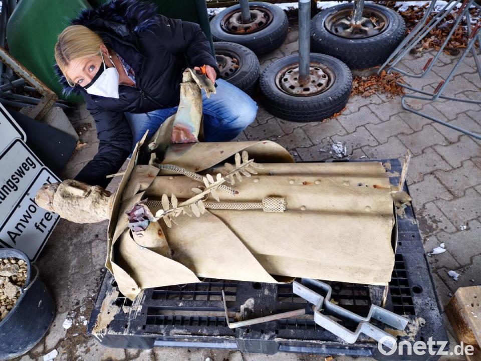 Doch warum war sie plötzlich weg? ÜPW-Markträtin Gabi Wittleben brachte das Verschwinden der sehr expressiven Statue aus Metall zur Sprache. Wie danach zu hören war, habe es wohl vor geraumer Zeit einen Unfall gegeben, bei dem ein Traktor oder ein Anhänger den Heiligen beschädigt hat, so dass der Bauhof die Statue vorsorglich abmontiert und mitgenommen hat. Dort hat Wittleben zwei Tage nach der Sitzung den Vermissten dann entdeckt. Er liegt auf dem Boden des Maschinenhofs und harrt der Dinge – über die es derzeit noch keine Entscheidung gibt. Weder das Rathaus noch die Angehörigen von Statuen-Stifter Hans Wotruba wissen, wie es mit dem halb mannshohen Brückenwächter weitergehen soll.