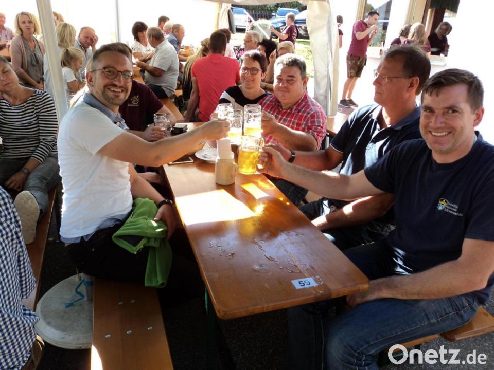 Die immer wieder fallenden Regenschauer hielten die Gäste nicht ab. Die aufgestellten Zelte waren ruckzuck gefüllt. Die Floriansjünger übernahmen das Bedienen der Gäste. Sie servierten deftige Brotzeitplatten mit verschiedenen Wurstsorten und Geräuchertem sowie gegrillte Bratwürste, Forellen und Makrelen. Als Imbiss wurde noch Brotkuchen aus dem vereinseigenen Steinbackofen angeboten. Neben alkoholfreien Getränken wurde helles und dunkles Zoiglbier sowie das dunkle Weißbier aus der Privatbrauerei Schnellinger aus Irrenlohe angeboten. Die Dreimannband "Die Hoglbuachan", die auch von Tisch zu Tisch ging, sorgte bis zum Festende mit Musik und Gesang für gute Stimmung.