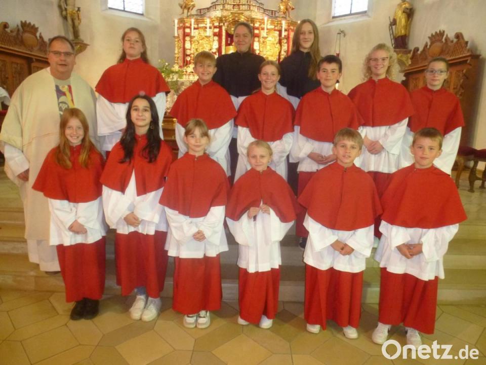 Grund zur Freude hatte Pfarrer Markus Urban: Er konnte im Rahmen eines feierlichen Gottesdienstes in der Pfarrkirche „Maria vom Siege“ 13 neue Ministranten willkommen heißen: Sophia Beck, Dorottya Csibi, Maria Fenk, Franz Fink, Laura Heininger, Sandra Klein, Lukas Keilhammer, Tobias Keilhammer, Lena Kraus, Klara Meier, Delia Schinteie, Katharina Schmid und Timo Weiß.