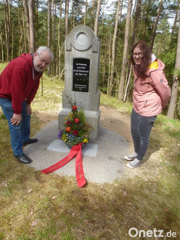 Überlebende der Todesmärsche waren nach ihrer Befreiung zurückgekehrt, um nach den sterblichen Überesten ihrer Kameraden zu suchen und ihnen ein würdiges Begräbnis zu ermöglichen. Das ganze Dorf musste zusehen, als die Leichen in den örtlichen Friedhof überführt wurden. Den SPD-Markträten Angela Heller-Wolfsteiner, Adolf Dümmelbeck und Anton Ziereis sen. war es 50 Jahre später ein Anliegen, dass das Leid der KZ-Häftlinge nicht in Vergessenheit geraten würde. Auf ihren Antrag hin gab der Markt einen Gedenkstein in Auftrag, der am so genannten Rosentradl an der Straße nach Neunburg am Volkstrauertag eingeweiht wurde.