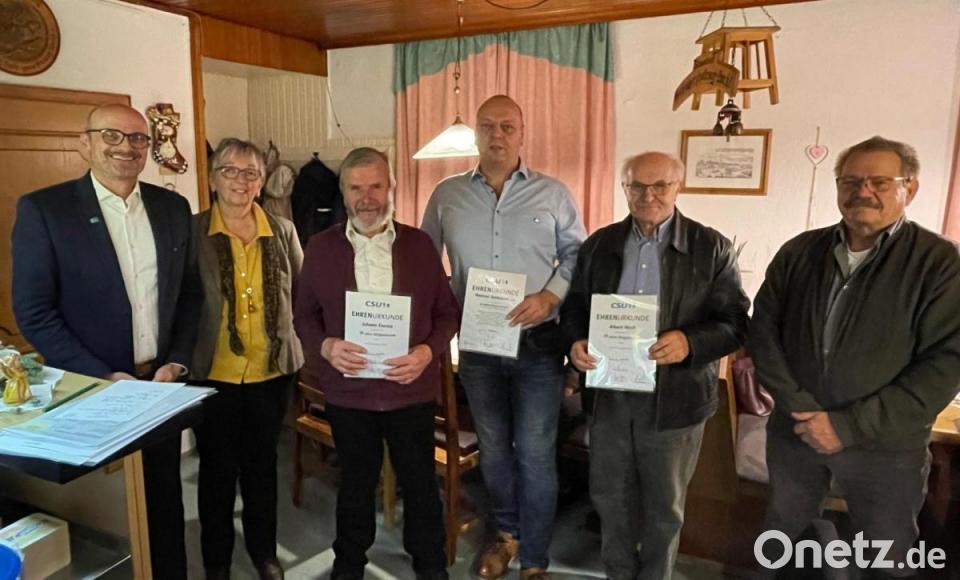 Zur Weihnachtsfeier der Schwarzhofener CSU im Gasthaus Weiß begrüßte Ortsvorsitzender und Bürgermeister Maximilian Beer die Mitglieder, darunter die kompletten CSU-Markträte. Wie aus einer Mitteilung der CSU hervorgeht, ehrte Beer in Vertretung des verhinderten Kreisvorsitzenden Alexander Flierl zusammen mit den stellvertretenden Ortsvorsitzenden Martina Ippisch und Franz Stockerl den Schwarzhofener Unternehmer Helmut Seebauer jun. für 20 Jahre Mitgliedschaft im Ortsverband und Thomas Weiß für 30 Jahre mit einer Urkunde und Nadel. Für vier Jahrzehnte Treue zum Ortsverband wurden Joseph Frey und Anton Vetter ausgezeichnet, die beide nicht an der Versammlung teilnehmen konnten. Sie erhalten Urkunde und Nadel separat. 55 Jahre sind Albert Weiß und Johann Ziereis sen. bei der CSU. Sie würdigte der Ortsvorsitzende besonders.