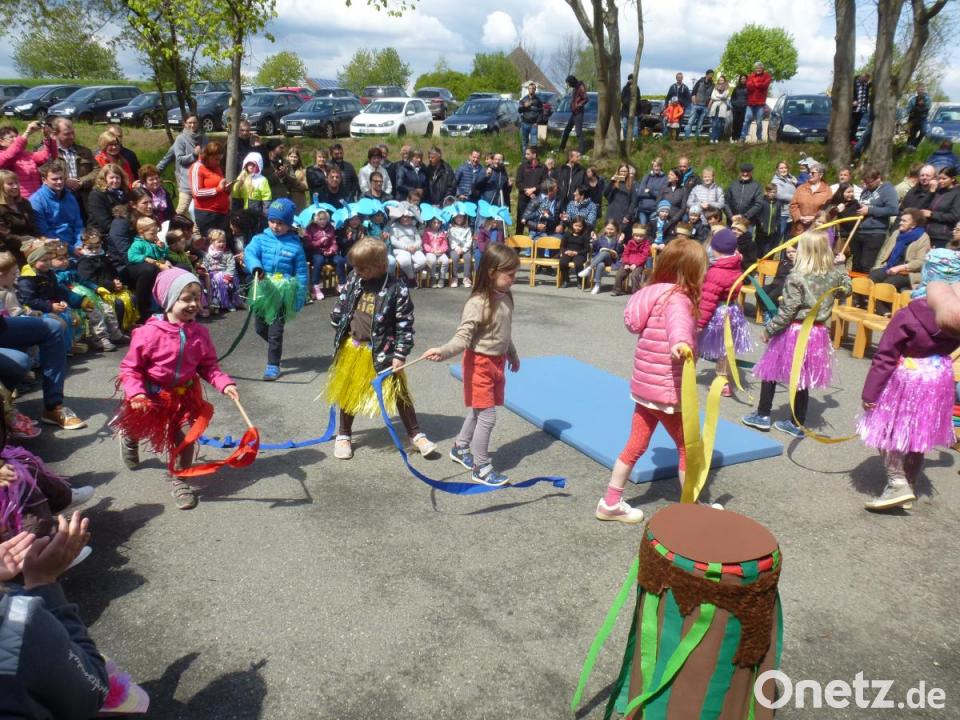 Die Kinder des Kindergartens hatten mit ihren Betreuerinnen schon lange für das Fest geübt und boten nun ein "Dschungel- Fest" mit Szenen nach dem "Dschungelbuch". Sie ernteten für ihre Darbietungen immer großen Applaus.
