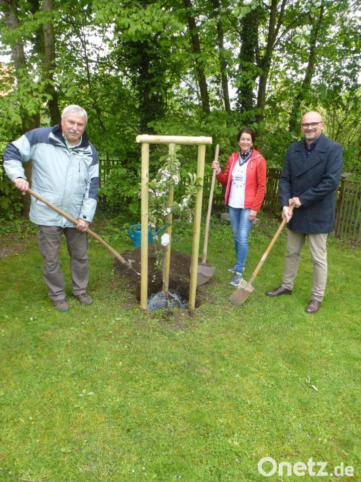 Im Vorfeld hatte der Gartenbauverein Schwarzhofen zwei Apfelbäume - die bereits blühen und Hoffnung auf Äpfel im Herbst nähren - zum Einpflanzen vorbereitet und die Pflanzlöcher ausgehoben. Die Kinder durften dann später Erde in die Löcher schaufeln. Der GOV hatte auch Beerensträucher gepflanzt. Die Johannis-, Brombeer- und Himbeerstauden sollen bereits in diesem Jahr den Kindern eine süße Freude bereiten. Dies alles konnte der Verein leisten wegen der Spenden des Bezirksverbands zum 40-jährigen Bestehen. Kindergarten-Leitung und Bürgermeister Maximilian Beer freuten sich über die Aktion.