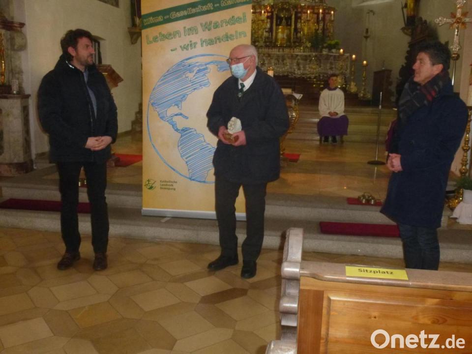 Überraschend begrüßte Pfarrer Markus Urban die Diözesanführung der Katholischen Landvolkbewegung im Sonntagsgottesdienst. Der Grund des Besuchs: Der langjährige Ortsvorsitzende Joseph Frey erhielt eine besondere Auszeichnung.