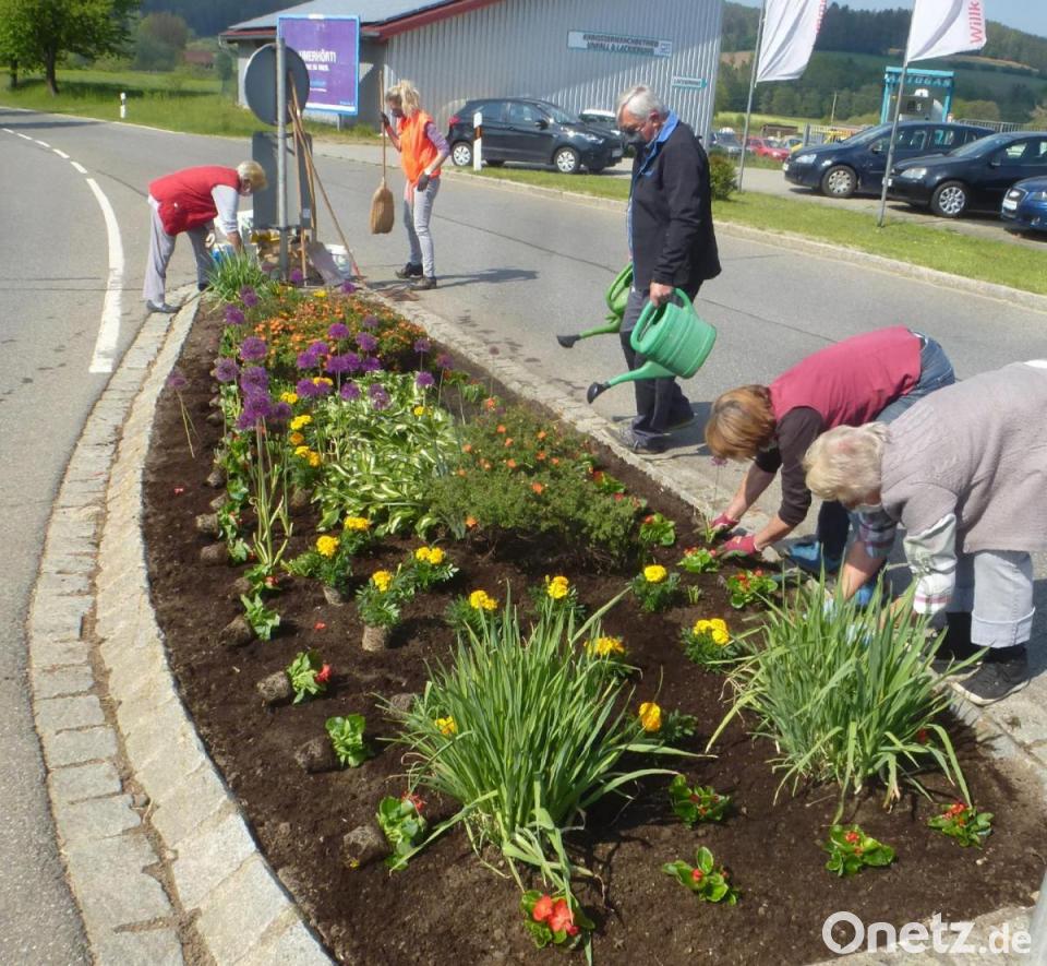 Etliche Mitglieder aus den Reihen der Vorstandschaft waren im Einsatz, um sich um die Sommerbepflanzung zu kümmern, schließlich ist die Jahreszeit schon weit fortgeschritten. Unermüdlich rührten sie die Hände, damit das Ortsbild wieder aufblühen kann. Der Marktplatz, die Ortseinfahrten, Verkehrsinseln, das Rathaus und die Begrüßungstafeln an den Ortseingängen wurden mit Blumen und Pflanzen aufgewertet. Die Bepflanzung vom Herbst hatte ausgedient und wurde entfernt.