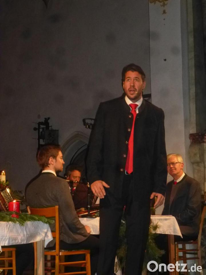 Hinter den "Stimmen der Berge" stecken fünf ehemalige Domspatzen: die Tenöre Thomas Gruber, Benjamin Grund, Stephan Schlögl, der Bariton Daniel Hinterberger und der Bass Simon Käsbauer. Diesmal musste Simon Käsbauer kurzfristig absagen, da er am Sonntagmorgen Vater wurde. Für ihn sprang Wolfgang Klose ein, der seine Sache sehr gut machte. Die Sänger kamen diesmal nicht zu einem Konzert im üblichen Sinn, sondern zu einer Aufführung nach Ludwig Thomas "Heiliger Nacht".