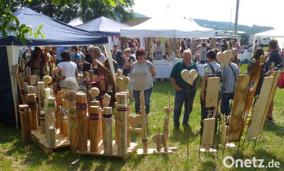 Im Ortsteil Schönau herrschte Ausnahmezustand: Die Hobbykünstler-Ausstellung auf dem Dorfanger lockte bei herrlichem Wetter eine wahre Flut von Besuchern aus nah und fern an. Die Dorfgemeinschaft hatte im Vorfeld ganze Arbeit geleistet und durfte sich über den riesigen Zuspruch freuen. Den Schönauern war es gelungen, den gesamten Bereich mit 20 Ausstellern zu füllen, die mit einer gewaltigen Palette an Angeboten aufwarten konnten: Weidenstecken, Filztaschen, Schmuck in mehreren Varianten, Naturschiefer, Holzdeko, Leinen, Objekte aus Stein und Stahl für den Garten, Naturkränze, bemalte Holztiere, Filzpantoffeln, Kindershirts, Glückwunschkarten, Klöppel- und Handarbeiten und vieles mehr. In der Dorfscheune wurden die Gäste mit Getränken und Grillspeisen verpflegt. Der Erlös aus der Bewirtung mit Steaks und Bratwürsten kommt dem Heilpädagogischen Zentrum in Irchenrieth zugute. Bild: mad