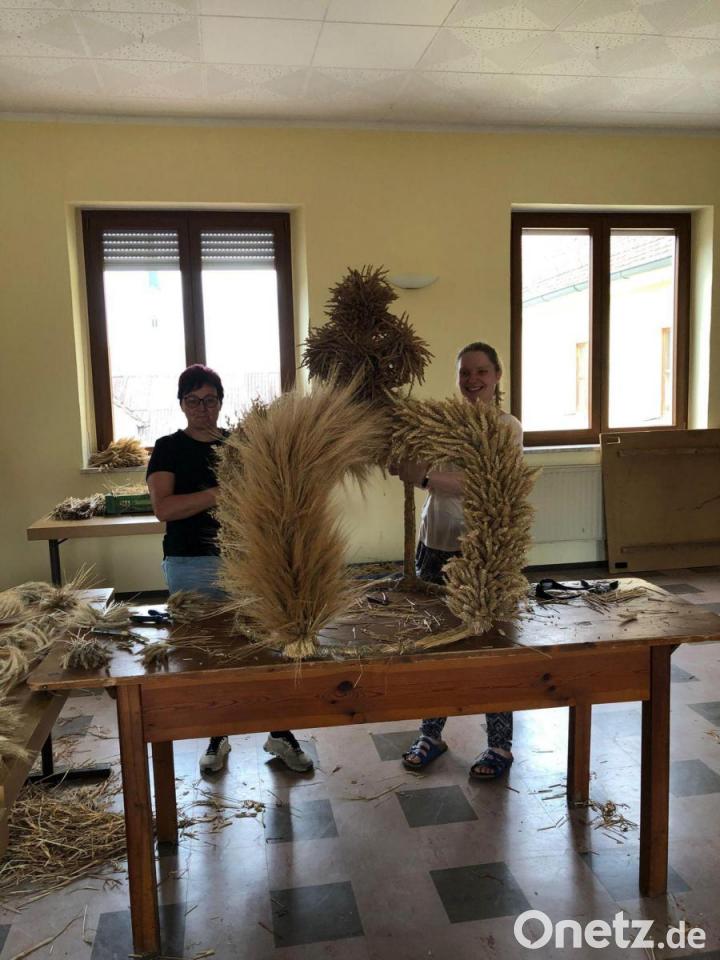 Schwarzhofen. Für das am kommenden Sonntag zu feiernde Erntedankfest wurde vor kurzem eine ganz wichtige Vorbereitung erledigt. Fleißige Frauen - auch vom Seelsorgerat – trafen sich im Pfarrheim Schwarzhofen, um eine neue Erntekrone zu binden, denn die alte war nach vielen Jahren Benutzung doch etwas unansehnlich geworden. Nun kann sich die Pfarrei über das neue Schmuckstück freuen.