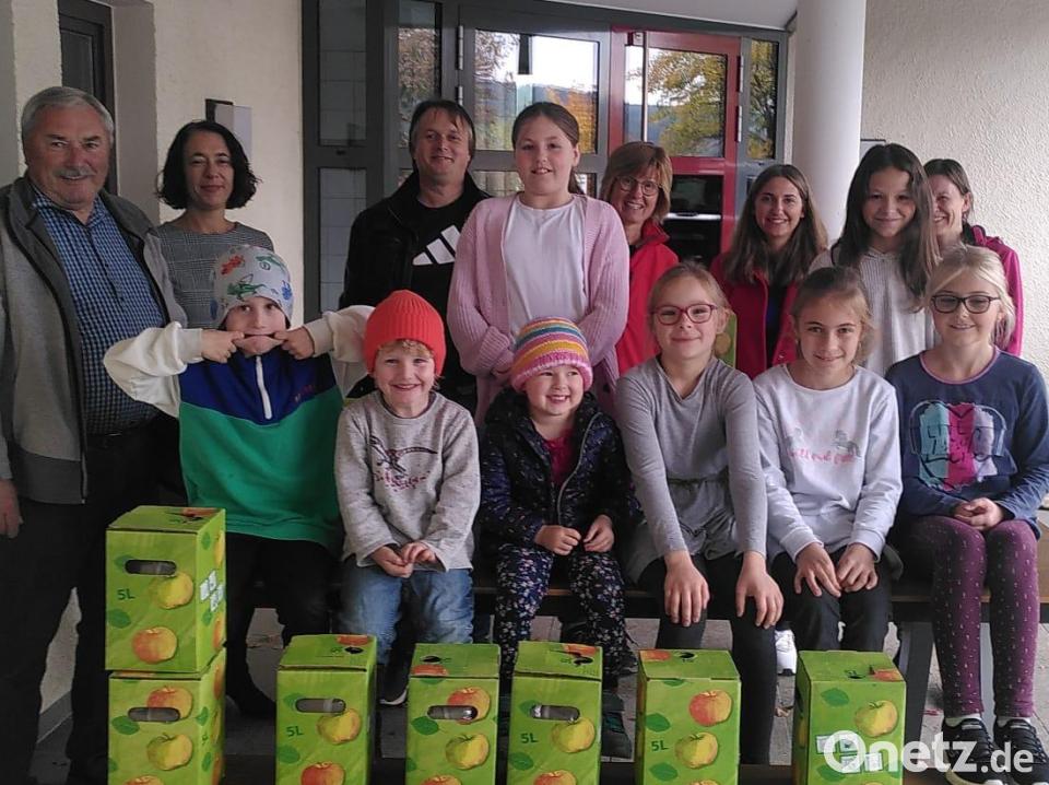 Federführend hat sich Martina Schwarz vom Kindergarten-Elternbeirat mit ihrem Vater Anton Schießl, Vorsitzender des Gartenbauvereins Schwarzhofen, um das Saftpressen gekümmert. Insgesamt konnten stolze 540 Liter Apfelsaft , das sind 109 Kartons, an den Kindergarten und die Schule übergeben werden.