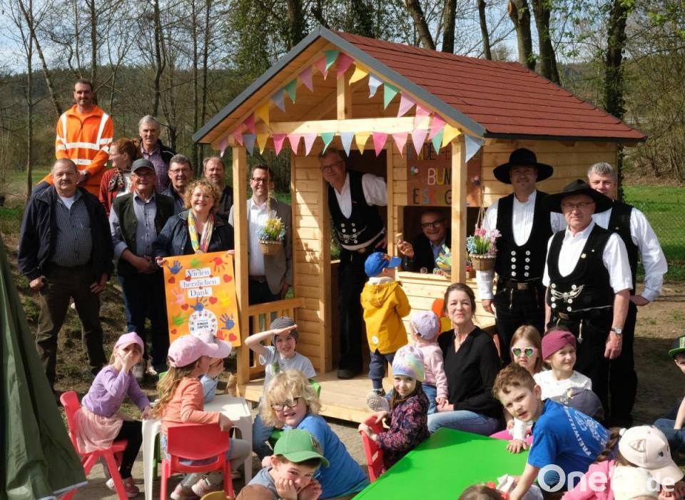 Die Kinder haben dem Spielhaus auch schon einen Namen geben“, verriet Kita-Leiterin Marion Weiß. „Bunte Eiskugel“. An der Feier nahmen auch Kreishandwerksmeister Florian Danzl, Geschäftsführerin Claudia Mendel und Vertreter des Gemeinderates Schwarzhofen teil.