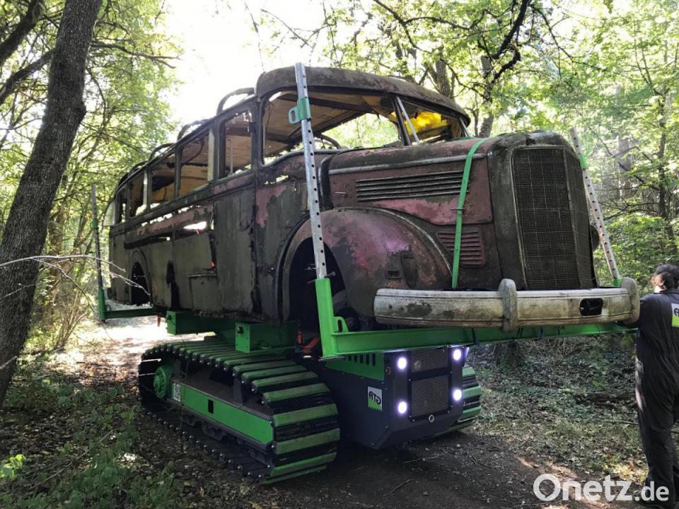 Schließlich erfolgte der endgültige Abtransport des fünf Tonnen schweren Oldtimers durch einen Tieflader. Die gesamte Aktion ging innerhalb von zwei Tagen über die Bühne. Das geborgene Objekt war ursprünglich als Linienbus in der Oberpfalz im Einsatz. Nachdem er nicht mehr gebraucht wurde, erwarb ihn ein Lehrer aus Mendorferbuch, der auch Bienenzüchter war. Er brachte das Fahrzeug tief in den Wald und nutzte es als Schutzraum für die Bienenstöcke.