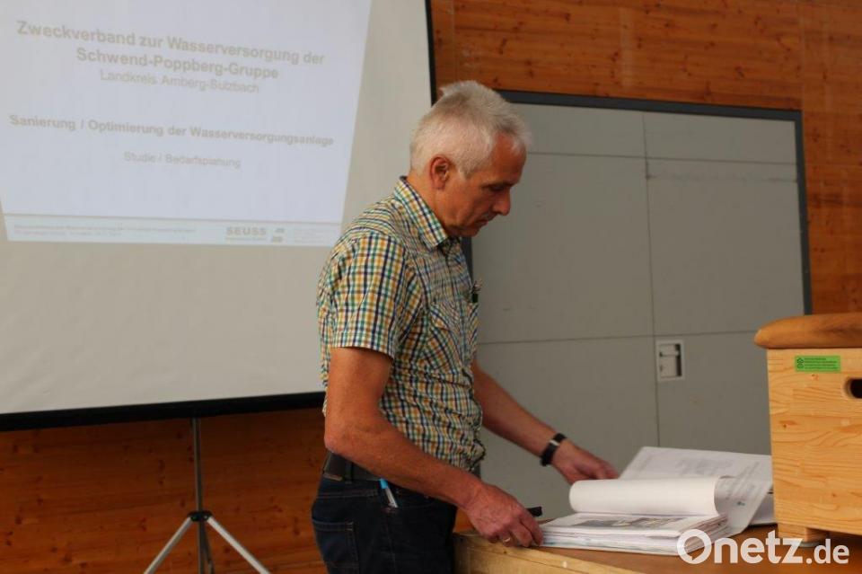 (sis) Auf großes Interesse stieß ein Info-Abend des Zweckverbands zur Wasserversorgung der Schwend-Poppberg-Gruppe in der Birglandhalle nach Schwend eingeladen. Norbert Winter vom Planungsbüro Seuß Ingenieure GmbH aus Amberg stellte Herr Winter die Pläne zur Sanierung und Optimierung der Wasserversorgungsanlage vor.