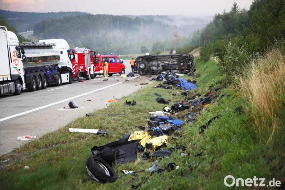 Bad Lobenstein/Hermsdorf. Auf der Autobahn 9 in Thüringen ist ein Kleintransporter von der Fahrbahn abgekommen und in eine Gruppe Motorradfahrer gekippt, die dort Halt gemacht hatte.
