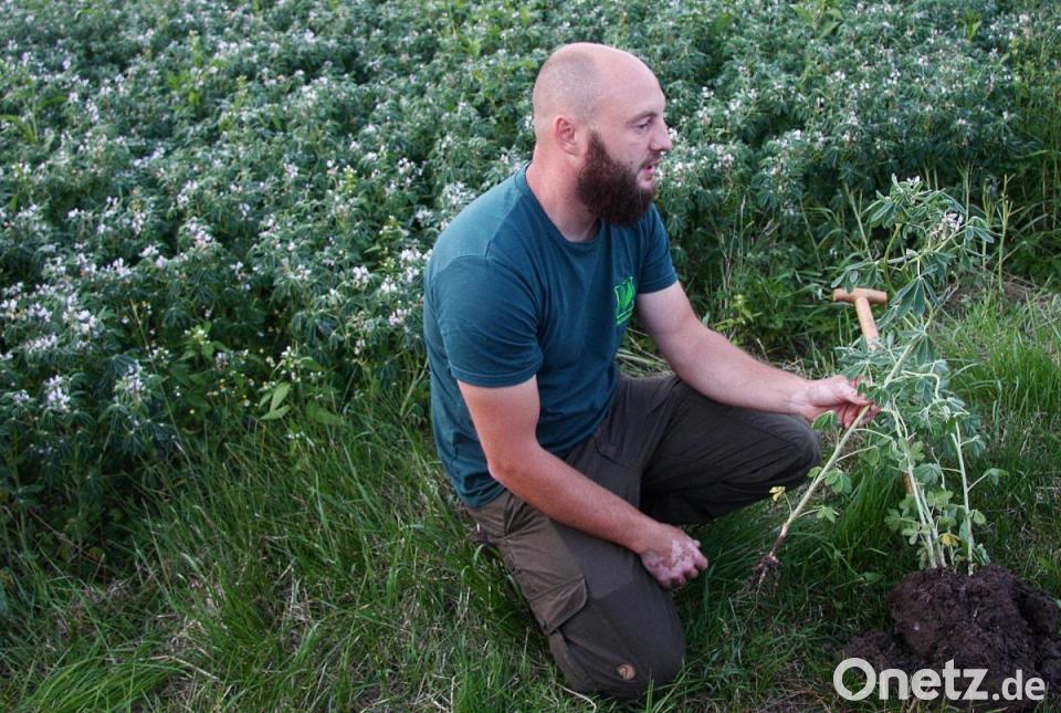 Den Schlusspunkt bei einbrechender Dunkelheit setzte eine Spatenprobe am Lupinenfeld im Süden von Seidlersreuth. Die Vorzüge der weißen Lupinen, eine wertvolle Eiweißnahrung für die biologische Tierfütterung und ein für den Boden zuverlässiger Stickstofflieferant, erklärte Naturland-Berater Konrad Maier. Anders als die blauen und gelben Artenvertreter sei die auf dem Seidlersreuther Acker wachsende Pflanze auch für Schweine und Geflügel verträglich. Der Anbau dient hier aber der Saatgut-Gewinnung.