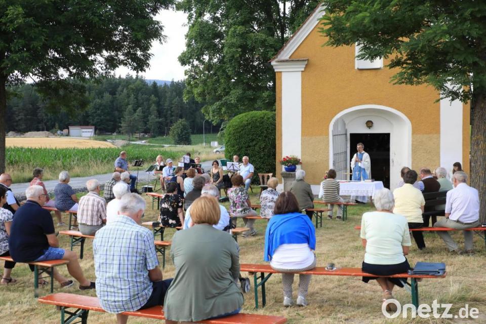 „Heute haben wir gleich drei Gründe, hier im Freien einen Gottesdienst zu feiern“, sagte Pfarrer Martin Besold. „Denn erstens gedenken wir der heiligen Anna, zweitens feiern wir den Namenstag Anna und Joachim und drittens hat Papst Franziskus den heutigen Tag zum ,Tag der Großeltern’ erklärt.“ Besold ging etwas auf die Geschichte der schmucken Kapelle mit einem Panoramablick auf den Steinwald ein. „Gutsherr Johann Nepomuk von Ibscher auf Schloss Siegritz begann 1813 den Bau der Kapelle, deren Fertigstellung einige Jahre in Anspruch nahm“. Durch Pfarrer Anton Goehl erfolgte erst am 14. August 1821, also vor 200 Jahren, die kirchliche Weihe.