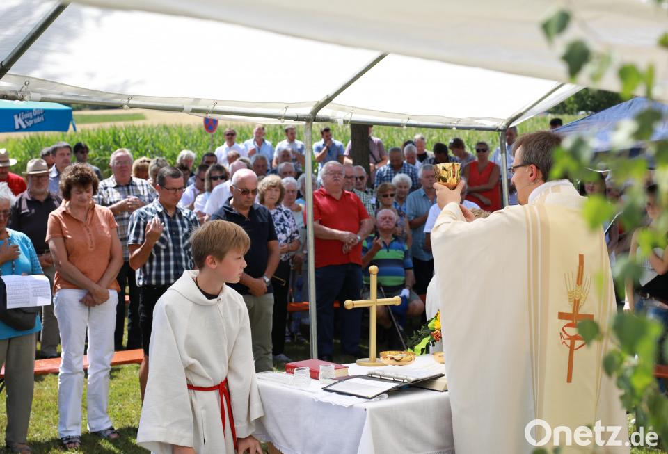 (njn) "Heute feiern wir das Patrozinium der St. Anna-Kapelle hier im schönen Siegritz", sagte Pfarrer Martin Besold aus Erbendorf im Gottesdienst vor dem Tor der St.-Anna-Kapelle. Vor wenigen Tagen war nach seinen Worten der Namenstag der heiligen Anna und dem heiligen Joachim. "Sie waren die Großeltern Jesu."