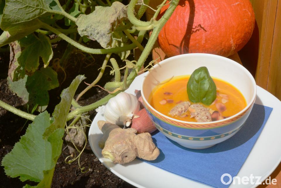 Wer Kürbis liebt, braucht nicht bis Herbst zu warten, um sein Lieblingsgemüse wieder auf den Tisch zu bringen. Vor allem die Suppen aus Kürbissen sind wahre Verwandlungskünstler und können auch nach Sommer schmecken. OWZ-Küchenchef Michael Schiffer würzt mit Ingwer, Kreuzkümmel und Kurkuma und holt damit Urlaub auf die Teller. Zubereitung: Für die Suppe Zwiebeln und Knoblauch fein würfeln. Zusammen mit dem gehackten Ingwer in Butter anschwitzen und zur Seite stellen.