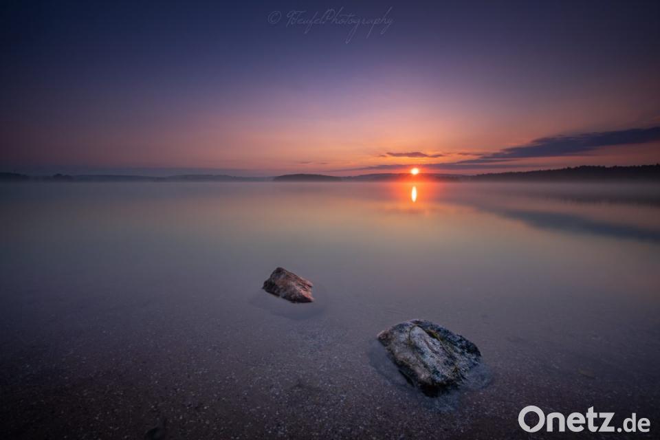 Das Südufer des Steinberger Sees bei Sonnenaufgang.