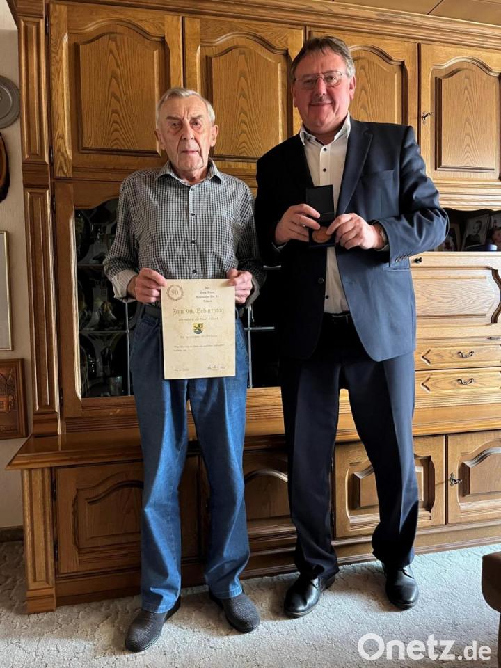 Der rüstige Jubilar Franz Bauer aus Sorghof feierte 90. Geburtstag, wozu ihm der Vilsecker Bürgermeister Hans-Martin Schertl gratulierte. Er überbrachte auch die Glückwünsche von Landrat Richard Reisinger, überreichte Präsente von Stadt und Landkreis sowie die Landkreismedaille in Bronze.