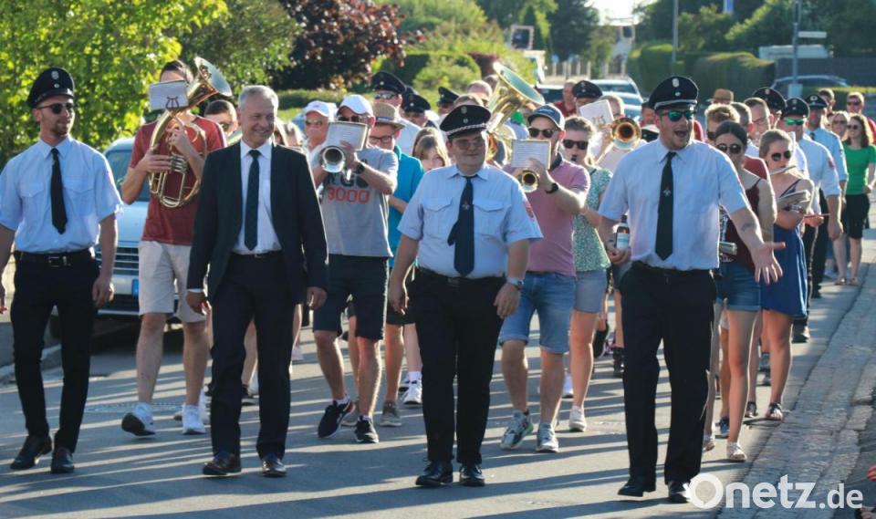 Zahlreich und sichtlich gut gelaunt machten sich beim Zapfenstreich vor dem Fronleichnamsfest rund 70 Teilnehmer auf die gut zwei Kilometer lange Wegstrecke durch die Straßen von Sorghof. Angeführt wurde die Parade von Zweitem Bürgermeister Thorsten Grädler sowie den beiden Kommandanten der Feuerwehr Sorghof, Emanuel Gonzales und Daniel Ritz, mit dem Vorsitzenden Peter Loos. Die Abordnung des Musikvereins Vilseck unter der Leitung von Florian Schertl und Hermann Hänsch intonierte dazu schmissige Marschmusik. Seit 2004 pflegt die Sorghofer Feuerwehr die Tradition des Zapfenstreiches vor dem Fronleichnamsfest wieder.
