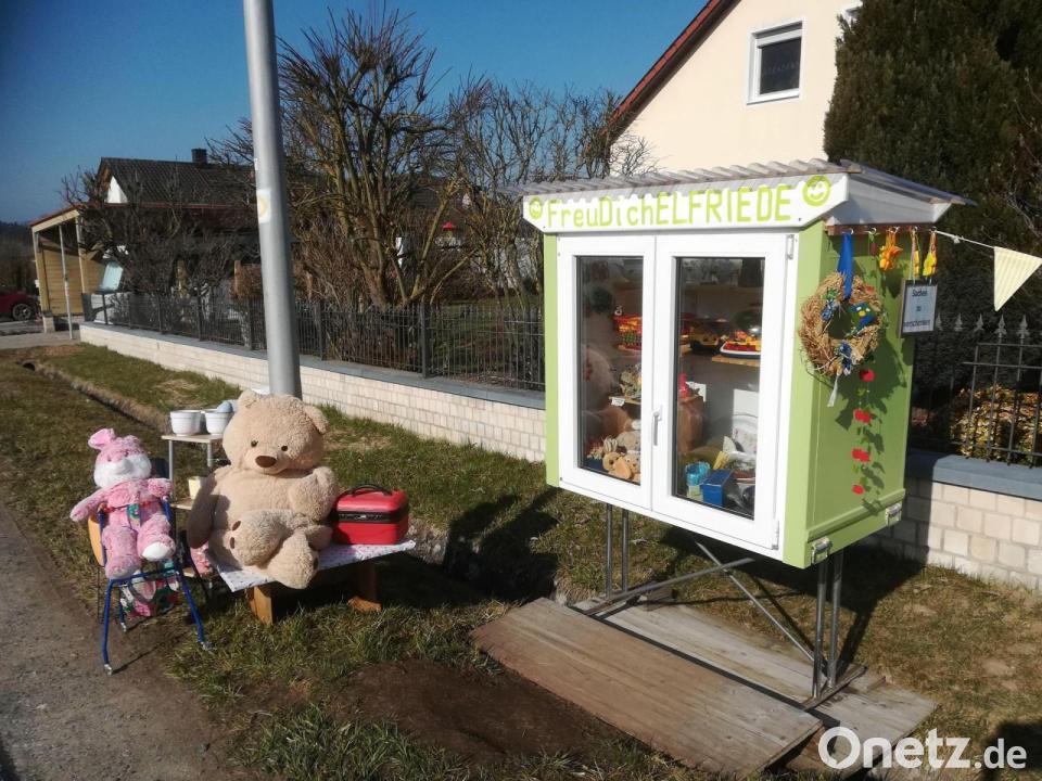 Nach der Winterpause ist der Verschenkeschrank „Freu dich Elfriede“ in Speckshof wieder geöffnet. Frisch geputzt und in Frühlingsfarben präsentiert, steht er am Straßenrand und zieht zahlreiche Besucher an. Der Schrank, der seit drei Jahren besteht, bietet eine breite Palette an Gegenständen, darunter Kinderspielzeug, Stofftiere, Dekorationen und Haushaltsgegenstände. Laut den Betreibern werden täglich etwa 2 bis 3 Wäschekörbe voll „Ware“ zum Nachfüllen benötigt, um der hohen Nachfrage gerecht zu werden.