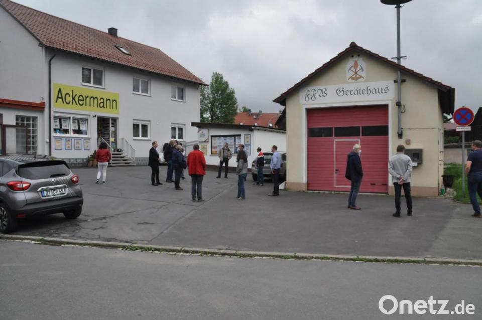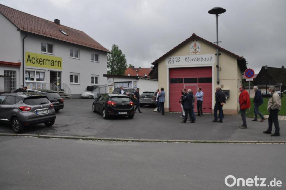 Erster Haltepunkt war das Gerätehaus der Feuerwehr Ramlesreuth. Die Gemeinde kam dort dem Wunsch der Ortswehr nach, den an das Gerätehaus angebauten Kühlraum umzunutzen. Bürgermeister Christian Porsch erläuterte, dass bisher bei Schulungen und Zusammenkünften Toiletten der Nachbarn benutzt werden mussten.