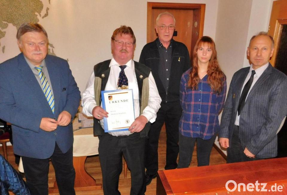 Der Jahresabschluss war auch ein gebührender Rahmen, Norbert Kaußler für seine 30-jährige Mitgliedschaft im Verband der Reservisten der Deutschen Bundeswehr (VdRBw) zu ehren. Ihm verliehen der Bürgermeister und der Kreisvorsitzende die RK-Treuenadel in Gold und Urkunde sowie eine weitere Urkunde des Verbands der Reservisten der Deutschen Bundeswehr.