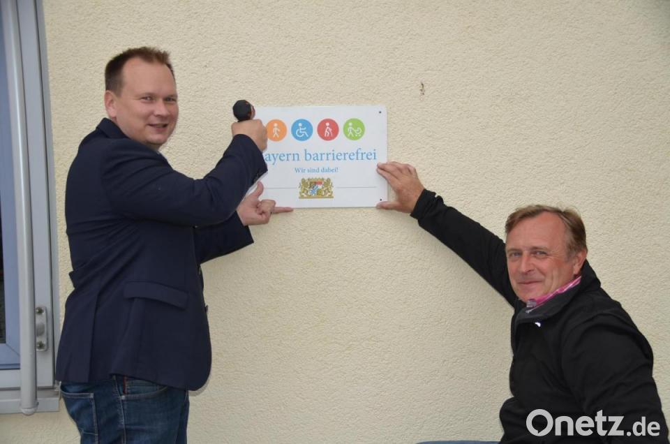 Mit dem Programm "Bayern barrierefrei" treibt der Freistaat den Abbau von Barrieren im gesamten öffentlichen Raum und im gesamten öffentlichen Personennahverkehr (ÖPNV) voran. Diesem Ziel hat sich die Gemeinde Speichersdorf angenommen und setzt dies Zug um Zug um. "Wir haben das Siegel des Freistaates für unsere Gebäude mit barrierefreien Zugängen und Standards erhalten", erklärte Bürgermeister Christian Porsch unter Beisein des kommunalen Behindertenbeauftragten Markus Vogel.