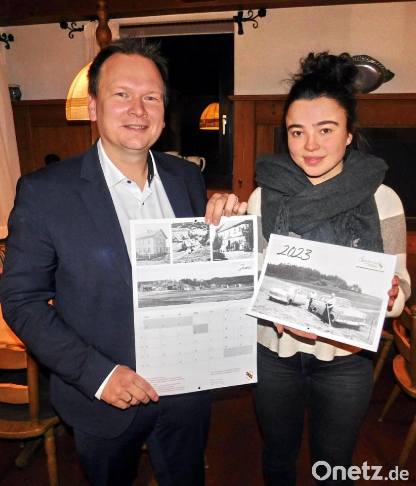 Bürgermeister Christian Porsch und Gemeindemitarbeiterin Eva Vogel präsentierten jüngst den Jahreskalender 2023. Die zweite Auflage des "Speichersdorfer Kalenders" sind historische Aufnahmen aus den zehn Ortsteilen zu sehen, die sich vor über 50 Jahren in der Gebietsreform zur Großgemeinde zusammengefunden haben.