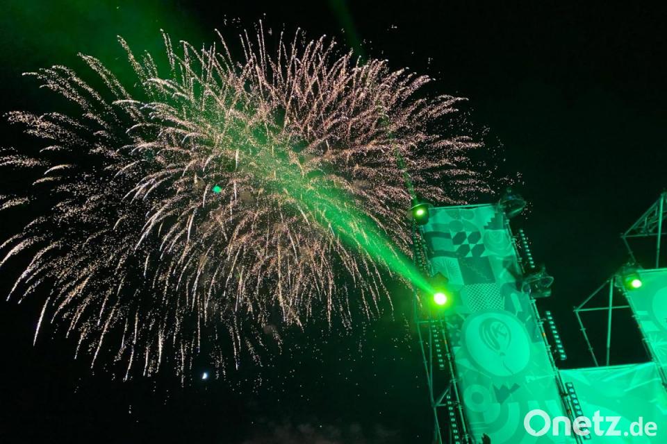 Als um 23 Uhr ein Feuerwerk am Nachthimmel hinter der Bühne hochgeht, treten zwei zufriedene Veranstalter auf die Bühne. "Danke, dass ihr mit uns zehn Jahre Kindheitstraum-Festival gefeiert habt", sagt Mitveranstalter Matthias Küffner, als er mit Veranstalterkollege David Lenk die Gäste verabschiedet. Um die 4900 Besucher seien am Samstag dagewesen, sagt Lenk gegenüber Oberpfalz-Medien. Er ist zufrieden mit dem zehnten Kindheitstraum. "Es ist alles in allerbester Ordnung gewesen. Es war friedlich und ein gelungenes Finale mit dem Feuerwerk."