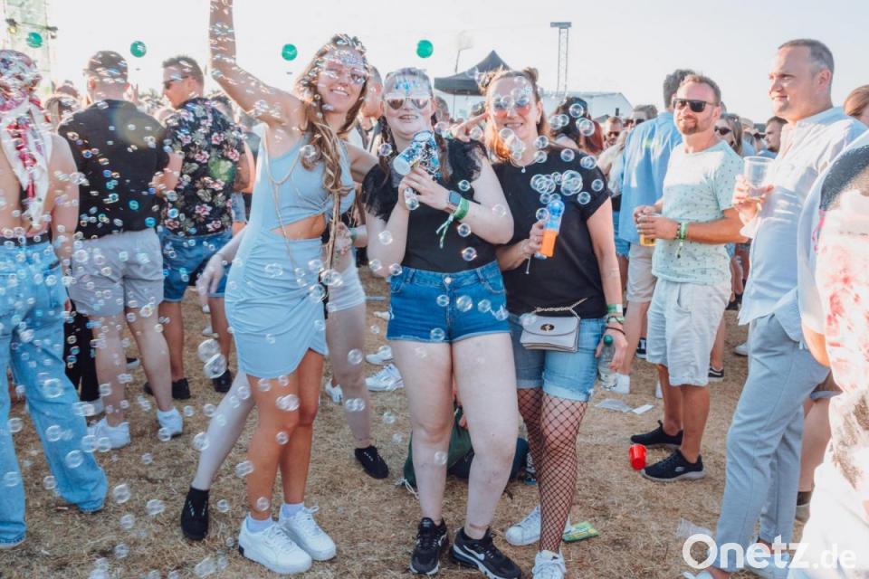Zwei davon gehörten zwei Musikfans aus Leipzig: Anna Schneider und Manuel, die von ihrem Kumpel aus der Nähe von Speichersdorf mit den Festivaltickets überrascht worden sind. "Uns gefällt's super", sagt Manuel. Die Gruppe will "auf jeden Fall bis zum Schluss bleiben", um zu den Klängen des Berliner Musikproduzenten zu tanzen, erzählen sie am Nachmittag. Rund 40 Kilometer sind Manuel und Tobias angereist, sie kommen aus der Fränkischen Schweiz. "Voll gut. Und mega geile Mucke", so ihr Fazit.