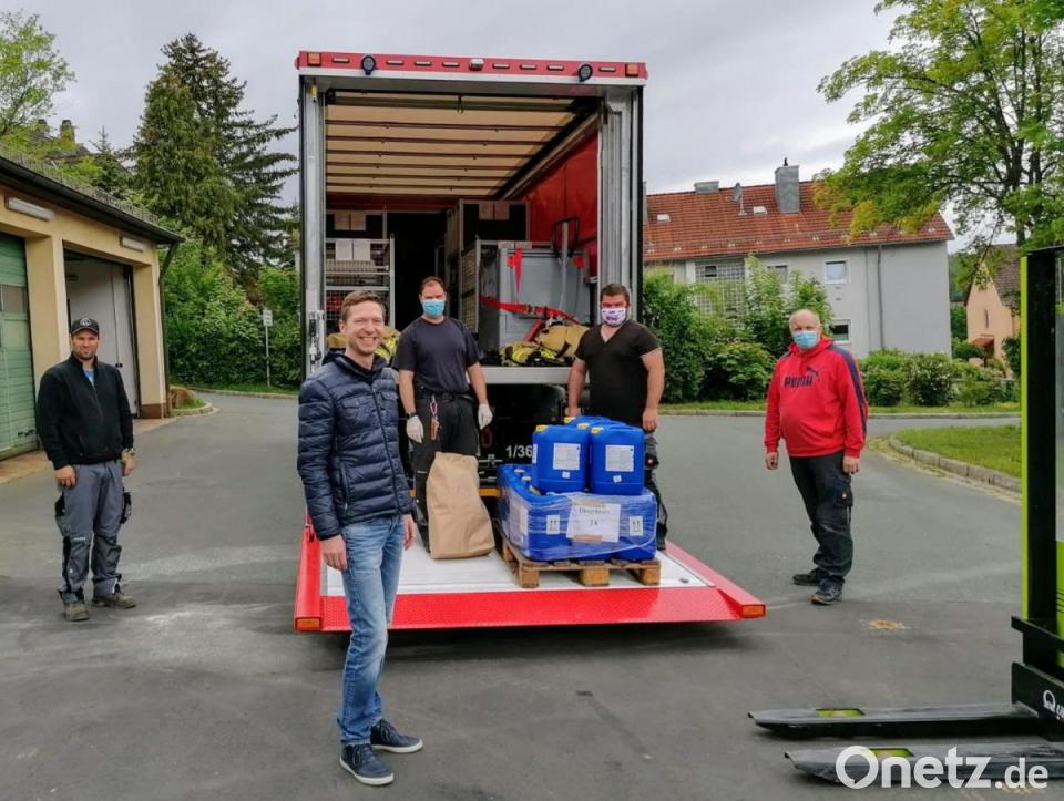 Die Führungsgruppe Katastrophenschutz des Landkreises Bayreuth hat an alle Feuerwehren im Landkreis Bayreuth Schutzmaterial ausgeliefert. Mehr als 7000 Liter Flächen- und Handdesinfektionsmittel sowie Mund-Nasen-Schutzmasken wurden am Logistikzentrum in Pegnitz nacheinander an jeweils eine Feuerwehr mit Transportkapazitäten aus allen Unterkreisen ausgehändigt. Die örtlichen Kreisbrandmeister sorgen nun für die weitere Verteilung an die einzelnen Standorte, so auch in Speichersdorf.