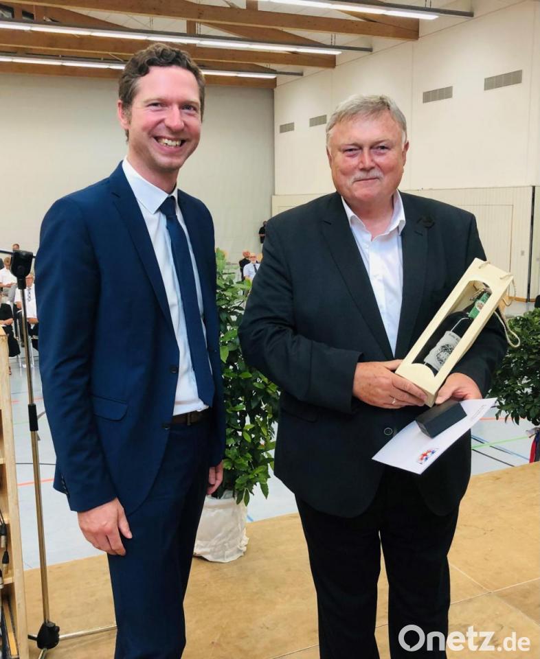 Zu den ersten Gratulanten gehörten in der Bindlacher Bärenhalle der Speichersdorfer Rathauschef Christian Porsch sowie Dritter Bürgermeister Franc Dierl.