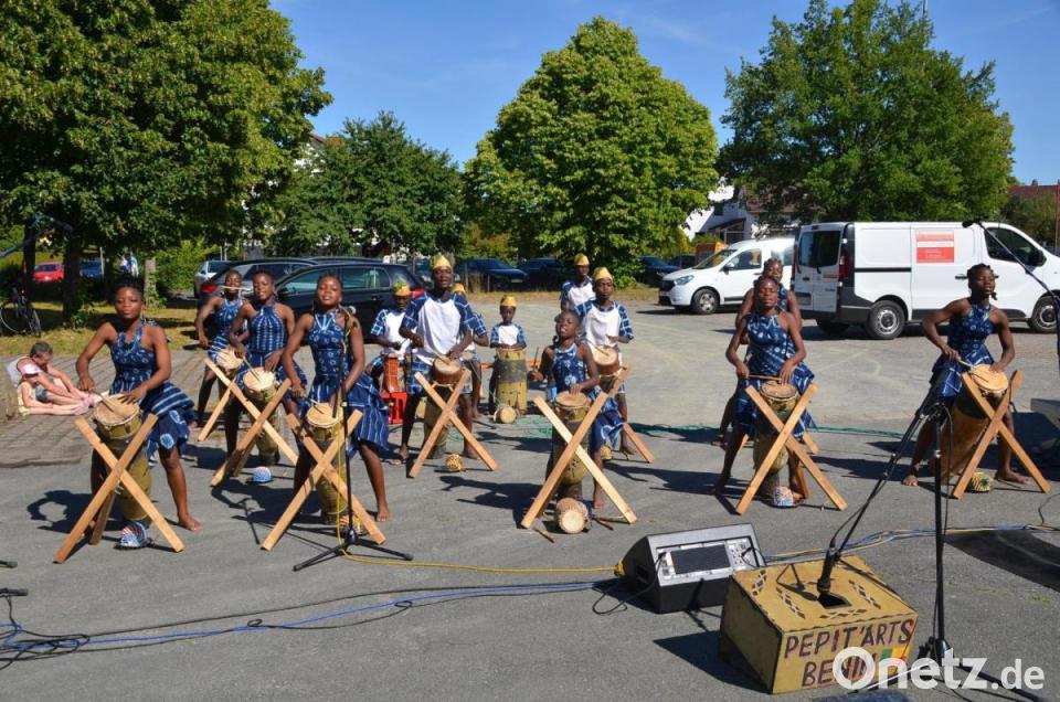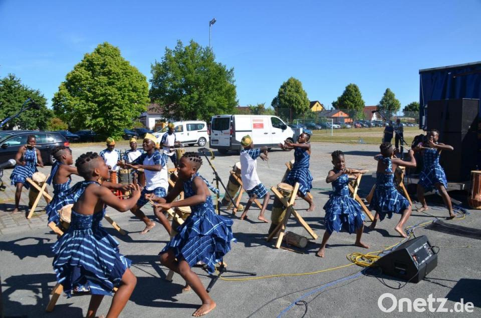 Mit einem einstündigen Toru (Tanz- und Musikvorführung) unterhielt die Musik- und Tanzgruppe Pepit' Arts de Benin die Besucher des TSV-Sportfestes am Sonntagnachmittag. Die Kinder und Jugendlichen aus Benin trommelten, tanzten und sangen nach Art der Kultur ihres westafrikanischen Heimatlandes und erhielten für ihre engagierten Auftritte kräftigen Beifall.