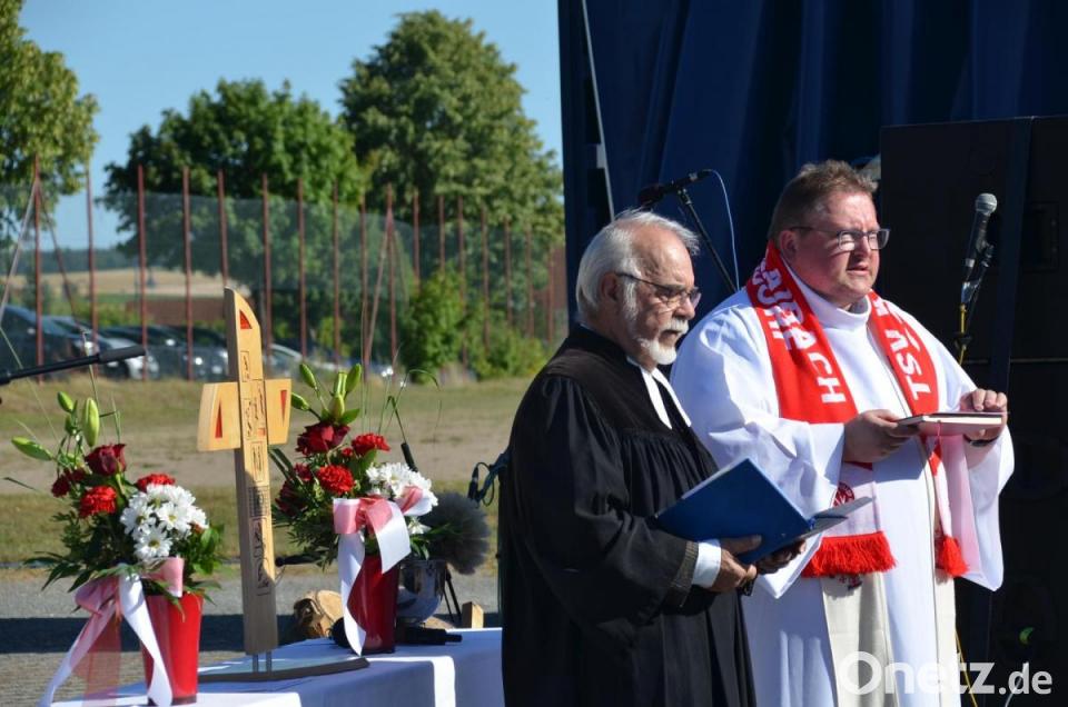 Die ökumenische Andacht zelebrierten die beiden Pfarrer Sven Grillmeier und Jürgen Taegert. Der Posaunenchor eröffnete mit dem Stück "Wunderbarer König". "Viele helfende Hände haben hier ein großes Werk vollbracht und es ambitioniert mit Herz und Verstand fertiggestellt", erklärten die Seelsorger. Sport sei die schönste Nebensache der Welt, er fördere das Zusammenleben und rüste junge Menschen für das Leben.