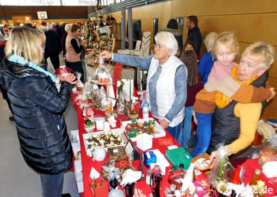 Traditionell hatten das Speichersdorfer Christkind (Lisa Geier) und sein Engel (Eva Geier) den Jubiläumsmarkt mit einem Gedicht eröffnet. Anschließend verteilten beide den ganzen Tag Süßigkeiten an Kinder. Das evangelische Posaunenensemble unter Leitung von Alfred Kreutzer ließ zur Eröffnung Weihnachtslieder erschallen. Besonders stolz war Lothar Büringer, dass unter den Fieranten wieder Neulinge dabei waren. Unter anderem Roland Hufnagel aus Gottsfeld bei Creußen. Mit Tochter Aimy präsentierte er Pfeffermühlen, Salzmühlen und Salzstreue aus Holz. Neben dem Schlittenfotoshooting des Christlichen Vereins Junger Menschen war auch der Sportartikelbasar des Elternbeirates ein Besuchermagnet. Im Angebot fanden die Gäste aber auch moderne und traditionelle Weihnachts- und Adventsdekorationen, dazu Bücher, Spiele oder Schmuck. Liebevoll dekorierte Tische luden zum Verweilen ein. Auch für direktvermarktete Lebensmittel gab es eine breite Palette. Die Bürgerstiftung Lebensfreude bot neben selbst gemachter Marmelade kleine Mitbringsel wie Engel, Papiersterne, Schaltücher, Geldbeutel und Etuis sowie Tickets für die nächsten kulturellen Highlights in der Sportarena an. Mit dabei war auch wieder die Schlaganfallselbsthilfegruppe, die Orangenpunsch, Weihnachtskugeln und Bastelsachen anboten. Die Kinderkrebshilfe Oberpfalz hatte neben selbstgebastelten Dekorationsartikeln frische Küchla gebacken. Der Katholische Frauenbund und der Pfarrgemeinderat waren mit Dritte-Welt-Artikeln vertreten.