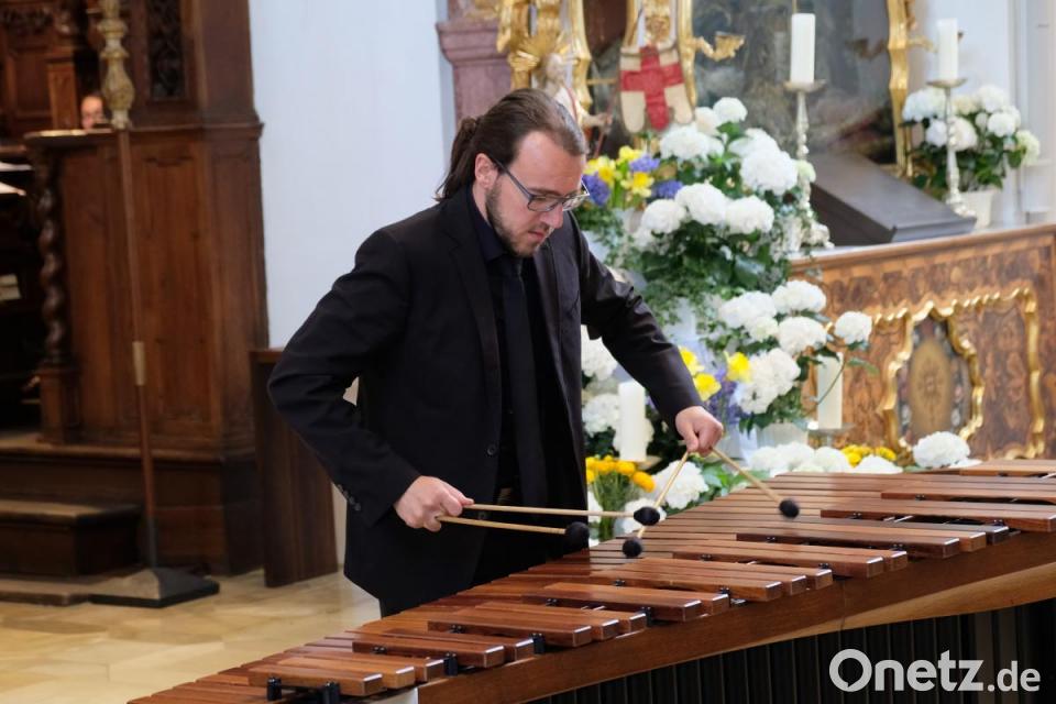Hingerissen lauschte das Publikum auch den Solostücken von Christoph Günther auf dem Marimbaphon, einem ursprünglich afrikanischen Instrument. Mit „Romantica“ und Robert Schumanns „Träumereien“ gelangen Günther mit seiner sensibel-kreativen Gestaltungskunst hinreißende Kabinettstücke. Der einzigartige warme, runde und zugleich volle Klang dieses Instruments verlieh dem Osterkonzert unvergleichlich schöne meditative Momente. Eine Zugabe musste deshalb einfach sein.