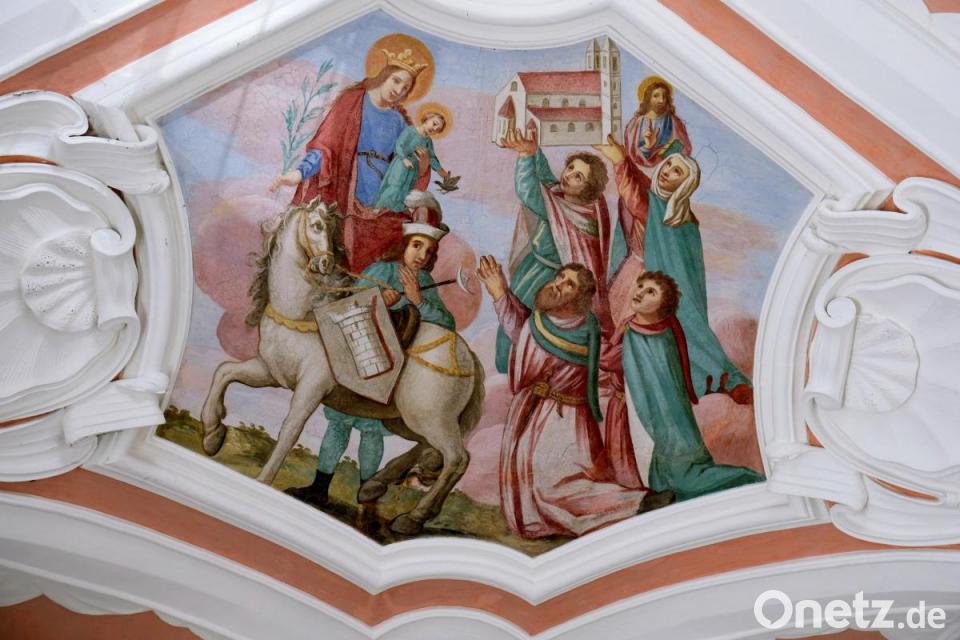 Bild und Inschrift sind gewissermaßen die Gründungsurkunde des Klosters. Ungewöhnlich ist jedoch, dass das Motiv inmitten der barocken Deckenornamentik eher an eine mittelalterliche Malerei erinnert. Die Wissenschaft ist sich heute ziemlich sicher, dass der barocke Künstler - denn das Bild ist zweifelsfrei im Barock entstanden - ein spätmittelalterliches Tafelbild als Vorlage hatte.