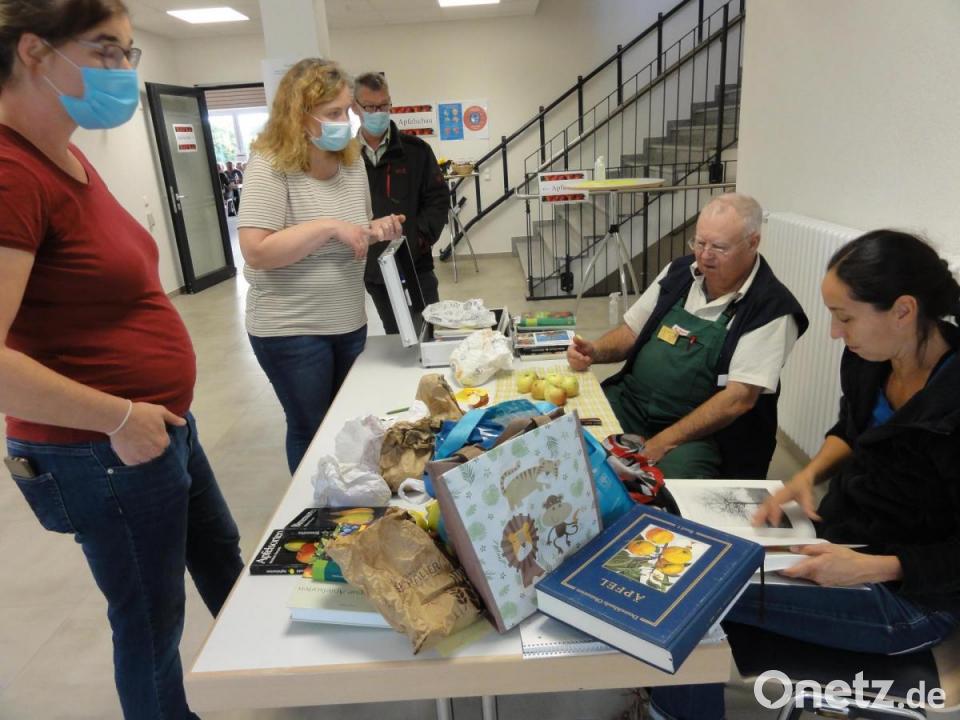 Trotz der relativ schlechten Ernte hatten Pomologe Michael Altmann und Gartenpflegerin Katharina Hage viel zu tun. Dutzende Besucher wollten wissen, welche Apfelsorte in ihrem Garten steht. Nicht immer fiel die Antwort eindeutig aus. Die äußere Form, die Musterung der Schale, das Gehäuse, all das kann verraten, welche Sorte da am Baum hängt. Ab und an hilft auch ein Griff zur Lupe oder in Fachbücher.