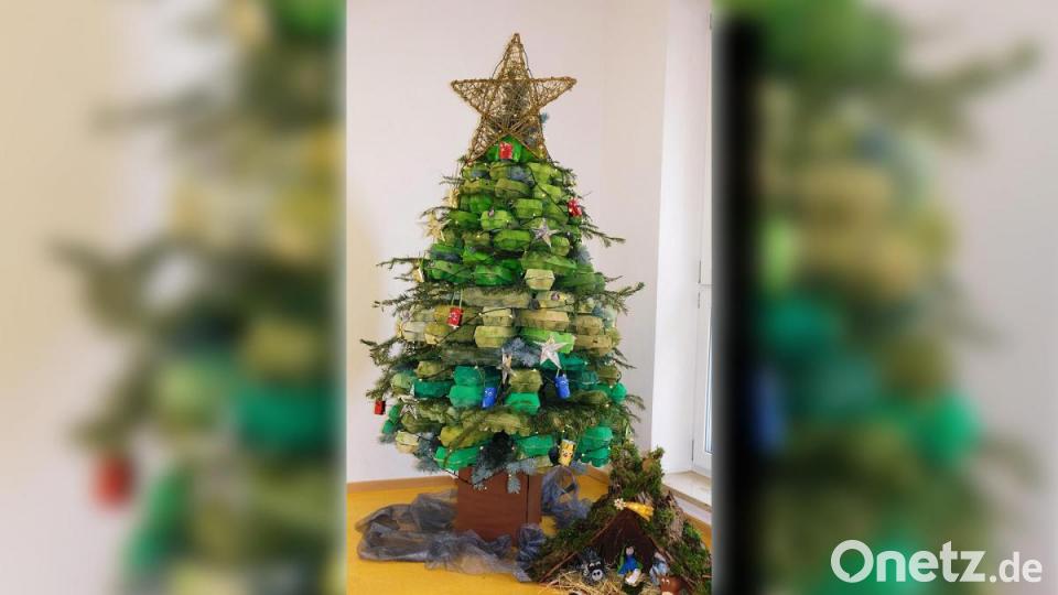 Schön verpackte Geschenke, strahlende Lichterketten und ein bunt geschmückter Christbaum gehören einfach zum Weihnachtsfest. Aber extra dafür eine Fichte oder Tanne fällen? Das muss nicht sein, finden die Kinder der Grundschule am Rauhen Kulm. Und die Kleinen haben eine Alternative parat - eine umweltfreundliche und nachhaltige noch dazu. Man nehme gebrauchte Eierschachteln, bastle daraus einen Baum und verziere ihn mit Flaschenkronen sowie anderem natürlichen Schmuck, und schon ist der Christbaum fertig. Na dann, frohe Weihnachten!