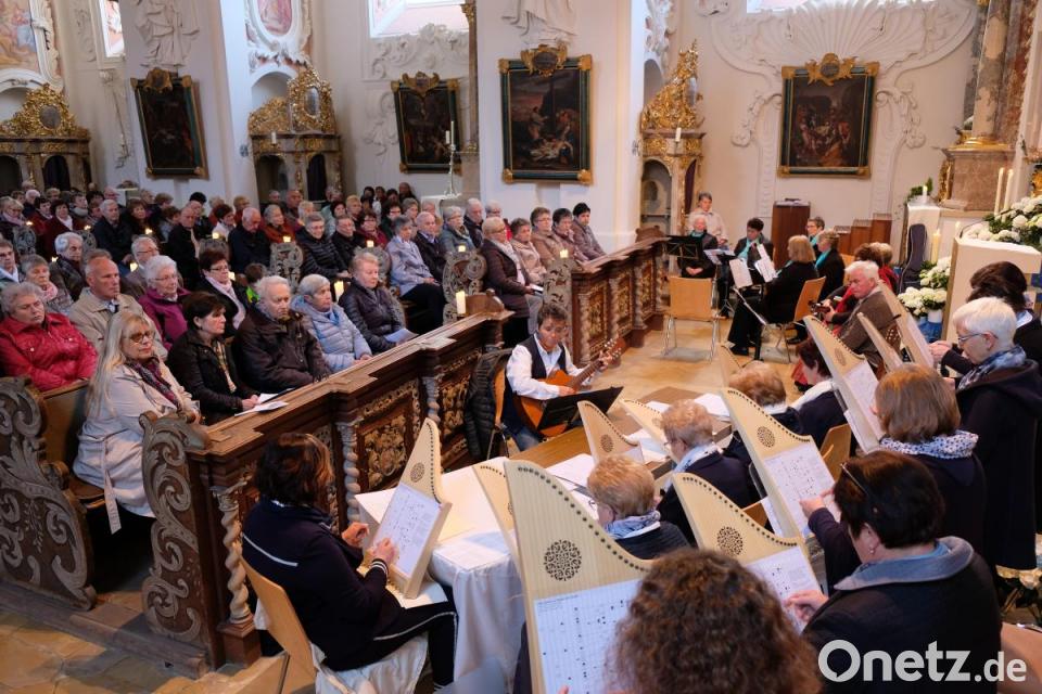 Werner Kosmale, der mit einfühlsamen Texten durch das Programm führte, verwies auf das große Altarbild und blickte hinauf zur Rosenkranzkönigin, die, umrahmt von einer großer Heerschar an Engeln, auf das Kirchenvolk blickte. Dieses Bild vor Augen wünschte der Moderator berührende Momente mit der Mutter Gottes im Herzen. Fortan eröffnete sich den Besuchern ein stimmungsvoller Zweiklang an Musik und Impulsen. In der Atmosphäre des barocken Gotteshauses mit seinem imposanten marianischen Bildprogramm orientierten sich die Musikgruppen an der langen Tradition der Marienverehrung, die in der Klosterkirche ein Stück weit auch zu einem Heimatrauschen führte. „Nun fanget an zu singen“. Der eigenen Aufforderung nachkommend ermunterte der Josefshofer Hausgesang mit Edeltraud Frank und Christa Böhm zu einer Stunde musikalischer Ehrfurcht.