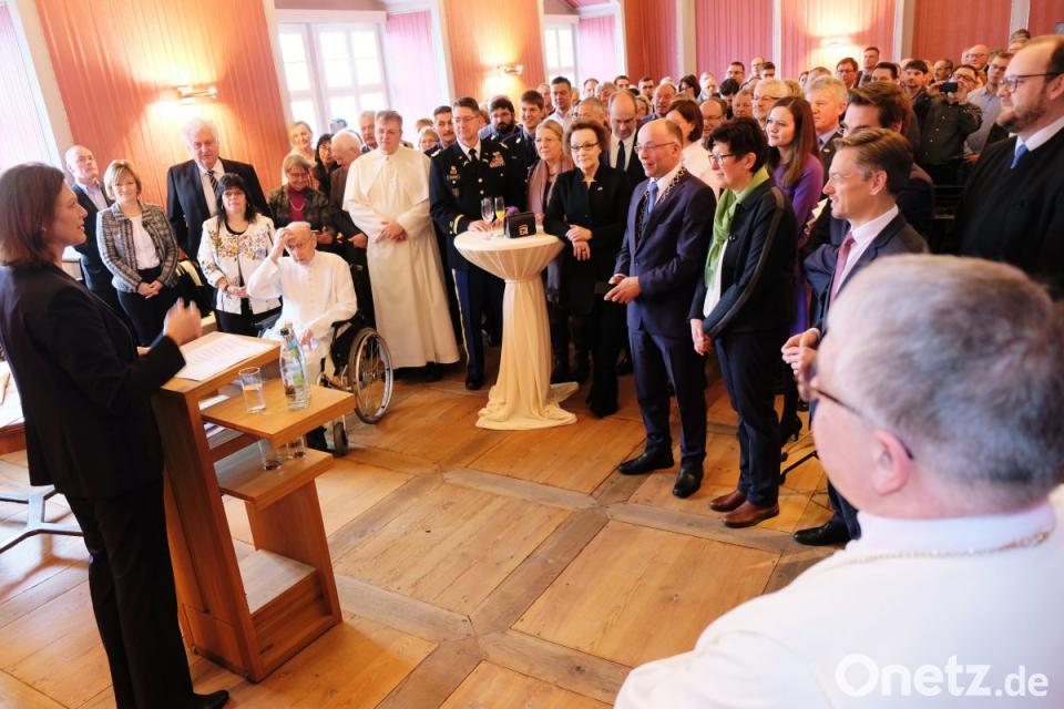 Doch zunächst erfreute ein Blechbläser-Trio der Musikschule und Riita Michelson am Flügel die Herzen der Besucher. Während danach Abt Hermann Josef Kugler auf die unruhigen Zeiten hinwies und Verlässlichkeit und Vertragstreue als Fundamente einer berechenbaren Zukunft beschwor, oblag es Bürgermeister Albert Nickl, den Gast aus München als mächtigste Frau Bayerns zu begrüßen.