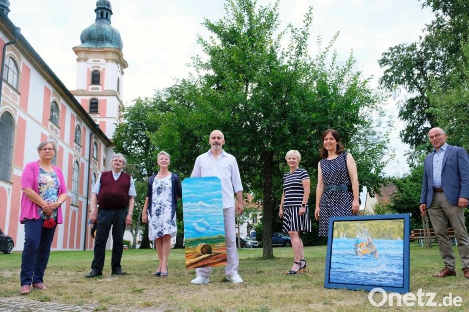 Doch genau diese Blicke öffnen Türen in neue Erlebniswelten, die es künstlerisch auszuleuchten und geistig zu durchdringen gilt, erläutert der akademische Maler aus Grafenwöhr. Die Oberpfalz als Heimatbegriff steht deshalb im Mittelpunkt der Ausstellung, die am Freitag mit einer Vernissage im barocken Prachtraum der Speinsharter Wieskapelle begann. Die Mitglieder von „KunstGewinn“ entführen mit ihrer eigenen künstlerischen Handschrift in die Natur und setzen sich mit der vorgefundenen Architektur auseinander. Schon beim ersten Hinsehen fällt auf: die Künstler Katrin Czogalla aus Eschenbach, Gabriele Lohner (Eschenbach), Gerti Reynolds (Grafenwöhr), Monika Schwindl (Grafenwöhr), Ulrich Sigmund (Schlammersdorf), Ines Zeitzer (Grafenwöhr) Kunstmaler und Ausstellungsleiter Johannes Janner verbinden ihr Schaffen mit der Oberpfälzer Heimat.