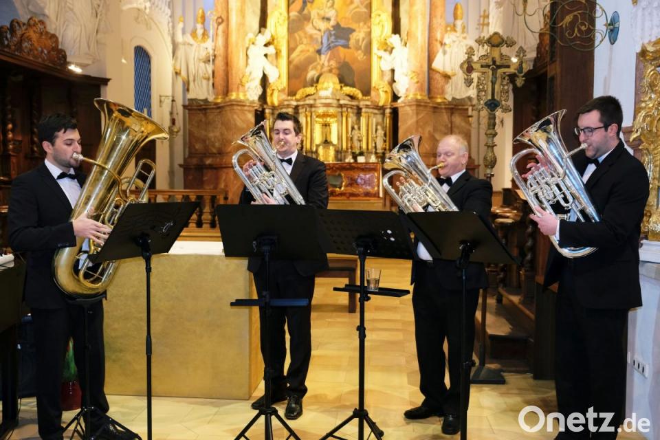 So viele Leute bei diesen Temperaturen? Thomas Englberger, Leiter der Internationalen Begegnungsstätte, entschuldigte sich quasi für den Eiskeller Klosterkirche. Gleichzeitig versprach er Entschädigung. Die Musik von Basalt Brass sollte die Besucher im überfüllten Kirchenraum mit "Euphonium meets Piano", so der Titel des Nachmittagsvergnügens, wieder auf Temperatur bringen. Und wie! Schon die ersten Klangvariationen der vier Blechbläser samt Pianisten verhießen ein musikalisches Erlebnis.
