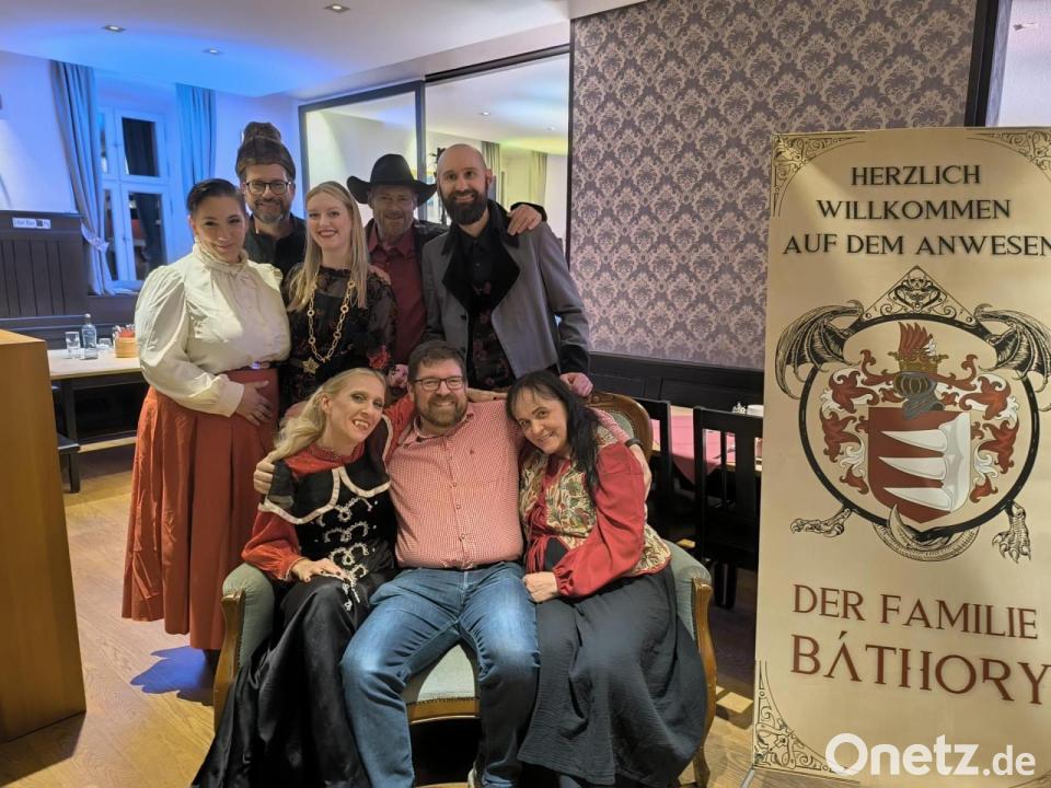 Das Ovigo-Theater hat im laufenden Jahr bereits über 15 000 Besucher bei seinen verschiedenen Produktionen begrüßen können. Ein Dauerbrenner sind die Krimi-Dinner, die bei Ovigo „Dinner mit Killer“ genannt werden. Mit „Mord im Hause Doubleface“ war das Theaterteam schon zweimal im Kloster-Gasthof Speinshart. Nun ist man mit dem neuen Dinner mit Killer „Das Geheimnis der Blutgräfin“ zurückgekehrt. Das Vampirstück schlug erneut voll ein. Bislang kamen bereits rund 4000 Besucher zu den immer ausverkauften Events. Auch am vergangenen Freitag war der Gasthof in Speinshart voll. 65 Gäste fanden Platz.