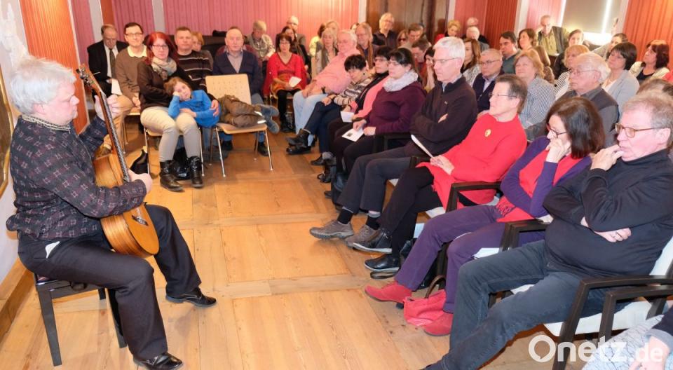 Im ausgeprägten Dreiertakt fühlte man sich an höfische Musizierkunst erinnert. Mit dem Programm "Bach & Barrios" schlug Tristao Adao, der eigentlich Roger Zimmermann heißt, einen Bogen von Johann Sebastian Bach zu Agostin Barrios. Stilistisch ein beeindruckendes Unterfangen und nur mit der Gitarre umgesetzt.