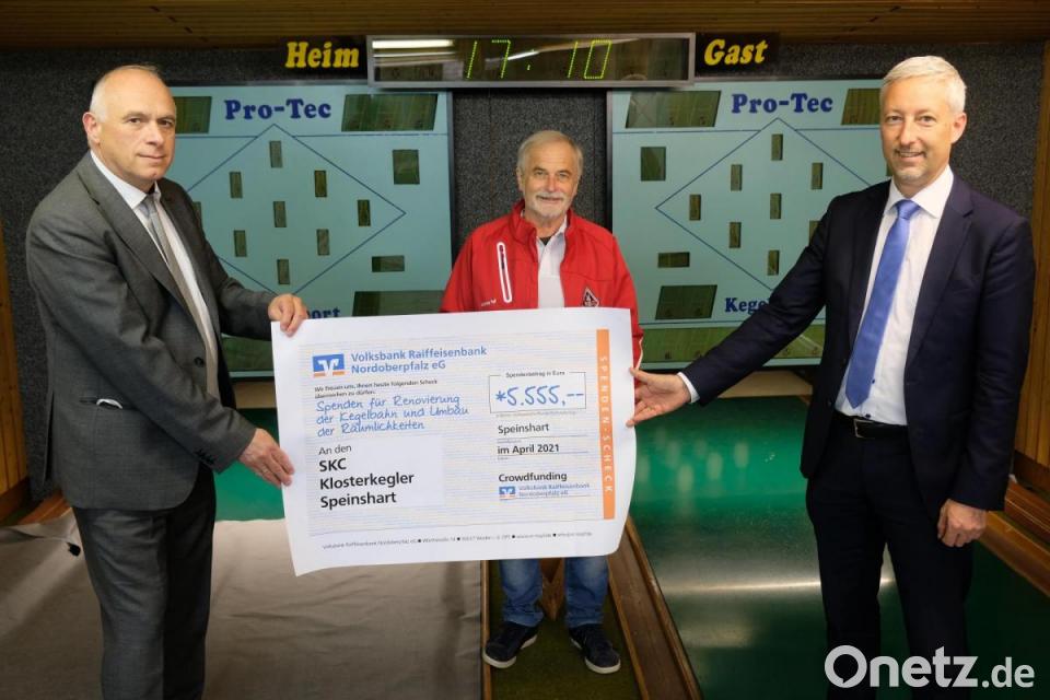 Glücklich ist der Vereinschef außerdem über eine weitere Initiative: „Viele schaffen mehr“, das Crowdfunding-Projekt der Volksbank Raiffeisenbank Nordoberpfalz, hilft mit, zur Finanzierung der Umbaumaßnahmen beizutragen. Hinter dem Portal steht die Gewissheit, dass eine genossenschaftliche Initiative von Nutzen ist. In der Tat greift sie auch den Klosterkeglern unter die Arme, damit diese ihr Wunschprojekt finanziell stemmen können. Gerade in Zeiten der Corona-Pandemie seien viele Vereine auf Zuwendungen angewiesen, betonte Regionalmarktleiter Stefan Schedl. In dieser Zeit getreu dem Motto „Viele schaffen mehr“ gemeinsam etwas zu bewirken, sei auch in Speinshart gelungen.
