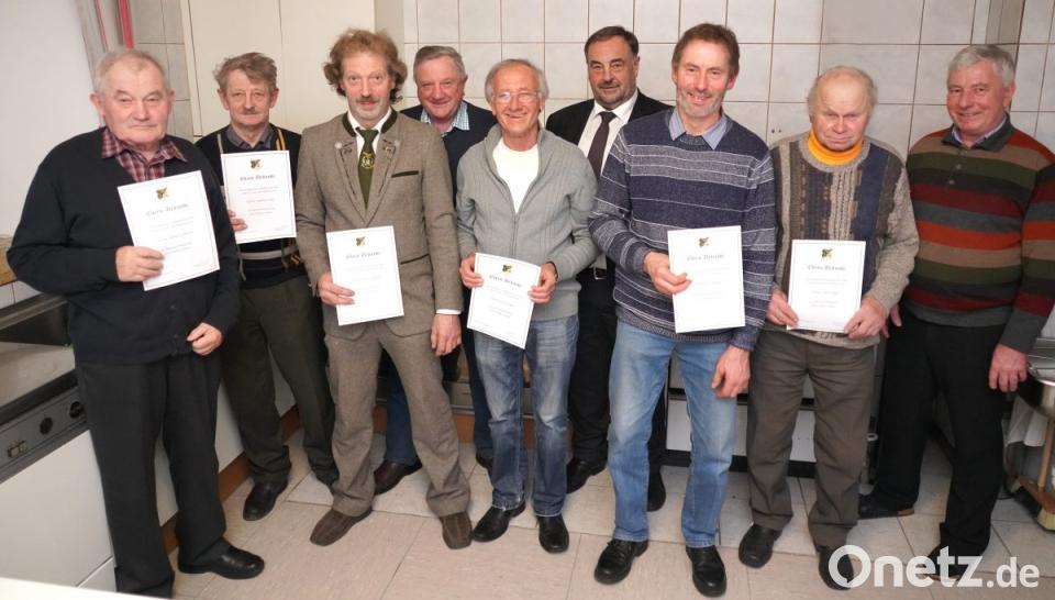 Folgende Mitglieder wurden von Schützenmeister Johann Leipold ausgezeichnet: 25 Jahre: Albert Rupprecht sen. (Albersrieth), Alois Schwab (Regensburg), Andreas Käs (Lennesrieth-Haselranken), 40 Jahre: Hans Frischholz (Ottenrieth), Josef Meckl (Spielberg) und Schützenmeister Johann Leupold, dem Doris Bodensteiner die Ehrenurkunde überreichte. 50 Jahre: Albert Völkl (Spielberg), Sigrid Lilge (Spielberg), Josef Feiler (Konradsreuth) und Vereinswirt Reinhold Feiler. Hierbei erklärte Leipold: "Danke, dass du den Schießstand, Strom und Wasser kostenfrei zur Verfügung stellst", erklärte Leipold. 60 Jahre: Alois Puff (Woppenrieth), Alfred Grötsch (Spielberg) und Andreas Käs aus Schönbrunn.
