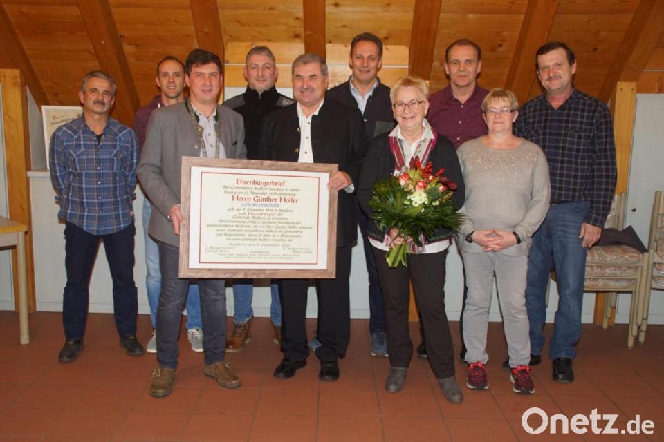 Eine offizielle Gratulationscour gab es vor Beginn der Sitzung des Gemeinderats: Bürgermeister Gerald Reiter und die Ratsmitglieder beglückwünschten Altbürgermeister Günther Holler nachträglich zu seinem 70. Geburtstag. Zudem hat der Gemeinderat die Leistungen von Reiters Amtsvorgänger für die Grenzgemeinde mit der Ernennung zum Ehrenbürger gewürdigt.